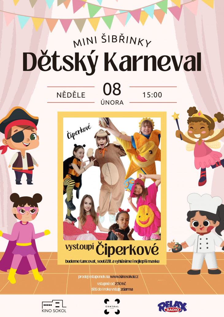 Přijďte si s dětmi užít veselý, barevný a taneční karneval plný radosti, zábavy a smíchu! Čeká vás nejveselejší dětská párty v Kině Sokol – tentokrát s oblíbenými Čiperky, kteří rozproudí zábavu svými písničkami a tanečky.