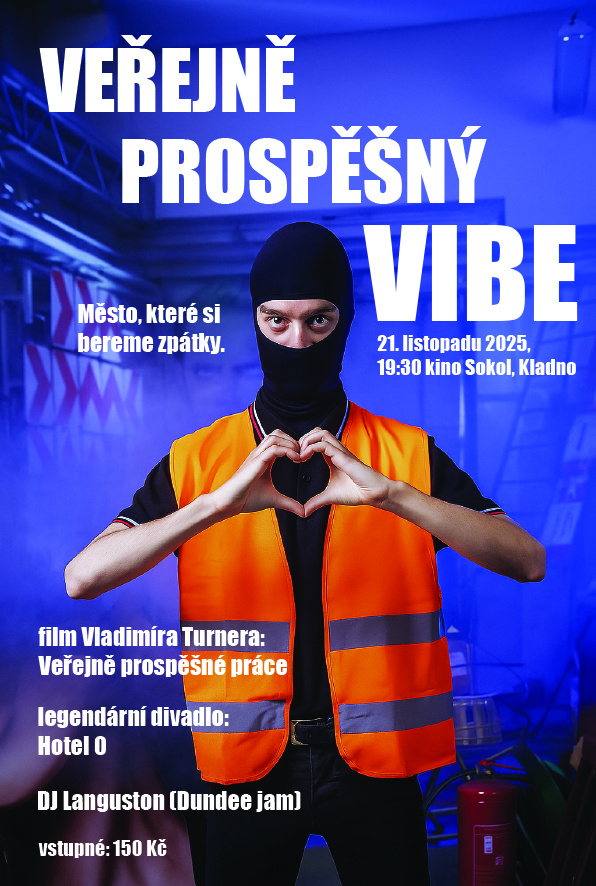 Zveme vás na pilotní akci Veřejně prospěšný vibe v Sokole, která přináší do Kladna alternativní kulturu, živé umění a večer s duší. V bývalém kině Sokol promítneme film Veřejně prospěšné práce režiséra Vladimíra Turnera, který ukazuje, jak se mění města a jak si lidé mohou vzít zpět veřejný prostor, aby skutečně sloužil těm, kteří v něm žijí – tematika, která Kladno zná z brownfieldů, industriálních zón a developerských projektů. Program doplní vystoupení lokálního divadelního souboru Hotel 0 a hudební set DJ Langustona, který prostor rozvibruje a večer propojí tancem i poslechem. Přijďte podpořit grassroots akci, prohlédnout si kino Sokol a být u toho, když se něco nového rodí. Film bude v češtině s anglickými titulky, startujeme v 19:30, vstupné je symbolické 150 Kč.