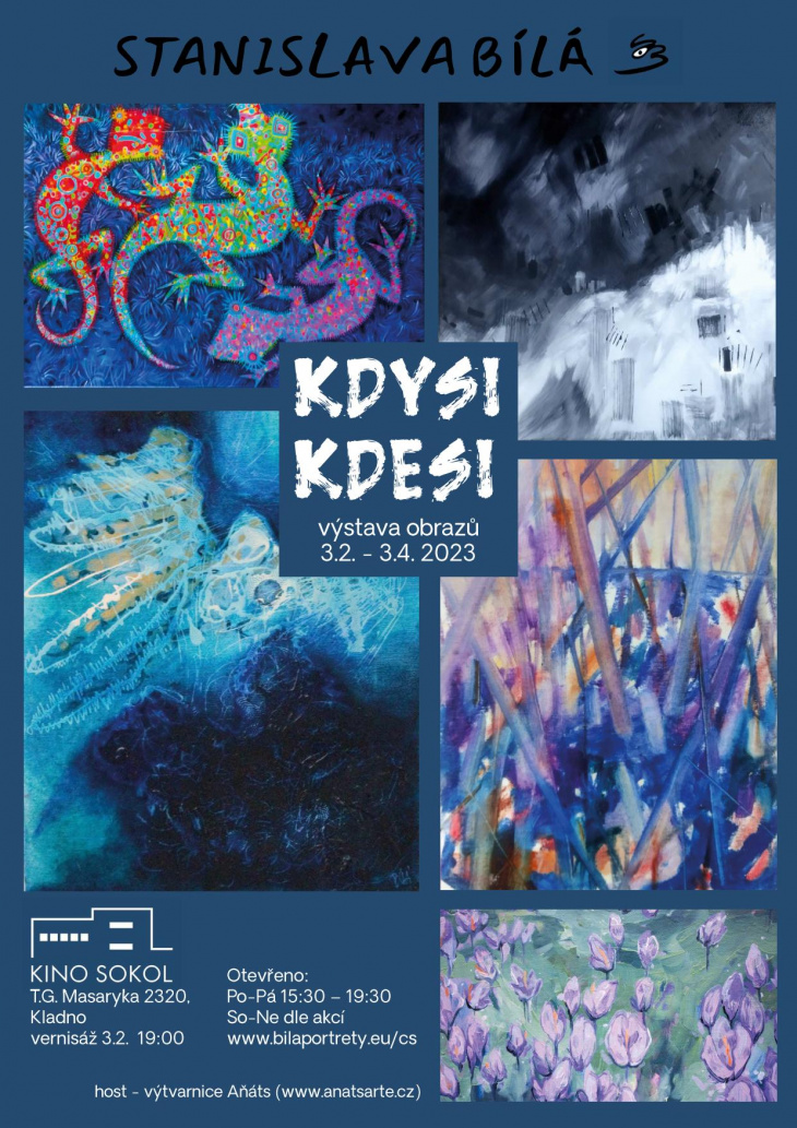 KDYSI, KDESI… Tentokrát v pátek 3.2. 2023 od 19h v prostorách kavárny Kino Sokol v Kladně. Zveme Vás na vernisáž výstavy obrazů Stanislavy Bílé. Prodejní výstava potrvá od 3.2. do 3.4. 2023.